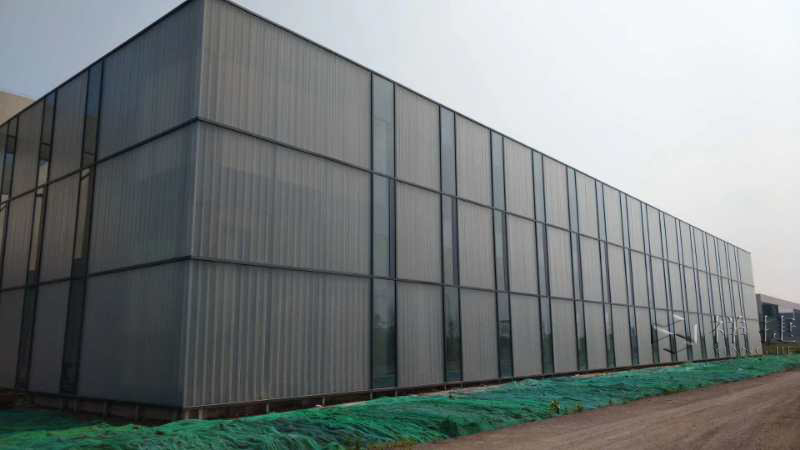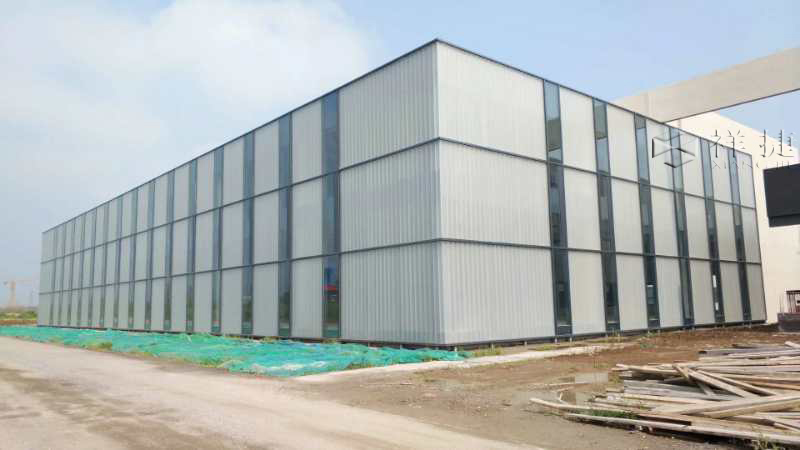 U型玻璃与通长平板玻璃竖窗结合,采光达到了90%,工厂透亮实现节能的效果。