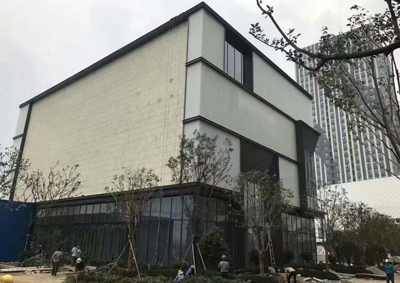 江苏徐州万科售楼部项目,该工程采用超白条纹蒙砂U型玻璃1800平。