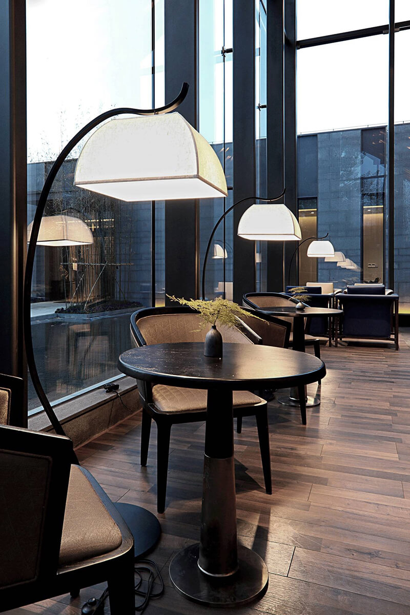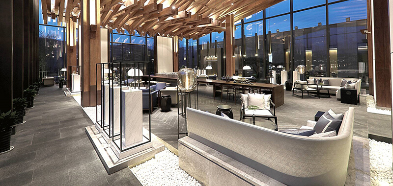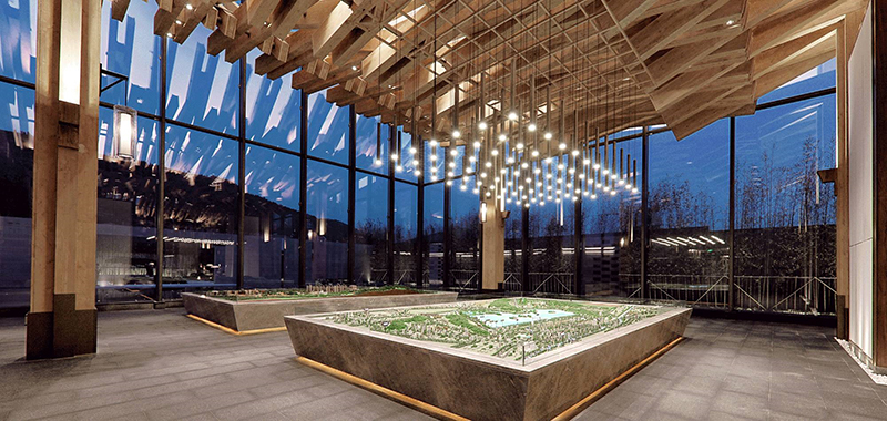 设计元素,我们以“国画留白”的哲学境界,巧妙地领衔贯穿于建筑本身。极具张力的天花造型相辅相成, “无画处皆成佳境,行得之于形外”的气势,浑然天成。通过简素,质朴寂静,反映出东方气质的精髓,方正严整、古朴雅奢。