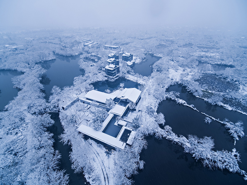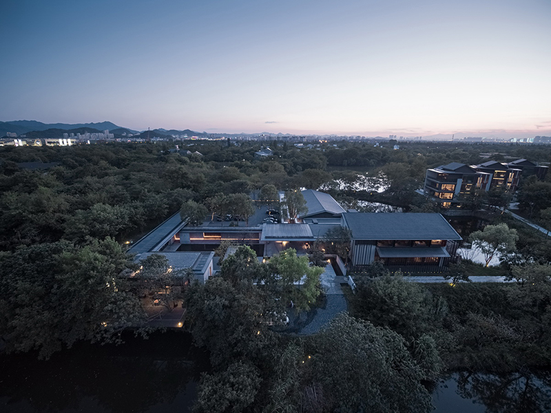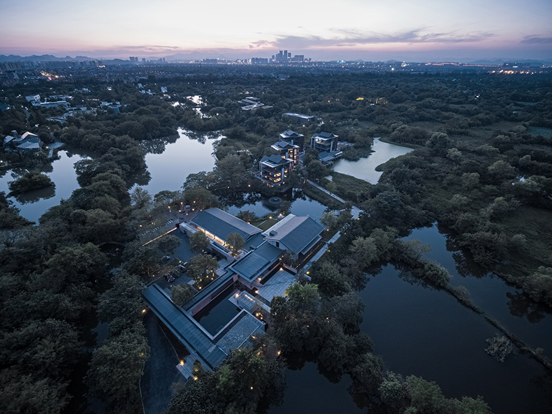 水路流线基于湿地的原始地貌而设计,使习惯了陆上出行的现代人群得以沿古水道前往酒店,在摇橹船徐徐的桨波中,获得观察西溪湿地的另一种视角。