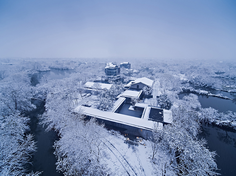 “木守”指特意留在树上的最后一个果实,农人将其与自然界中的动物分享,以祈祷来年的丰收,木守西溪酒店的设计正是取义于此。