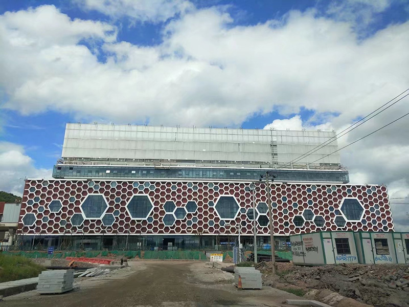 建筑设计:法国建筑大师设计,蜂巢状透视玻璃幕墙,颜色鲜明的六边形饰块,几何状层次分明的主体建筑,110米高塔楼式烟囱。
