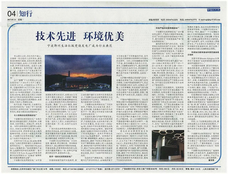 康恒环境宁波市鄞州区生活垃圾焚烧发电厂,有效地解决了宁波市鄞州区及周边区域生活垃圾的出路问题,实现了宁波市生活垃圾的无害化、资源利用,有效地改善鄞州及周边区域的生态环境,化解了“垃圾围城”危机。